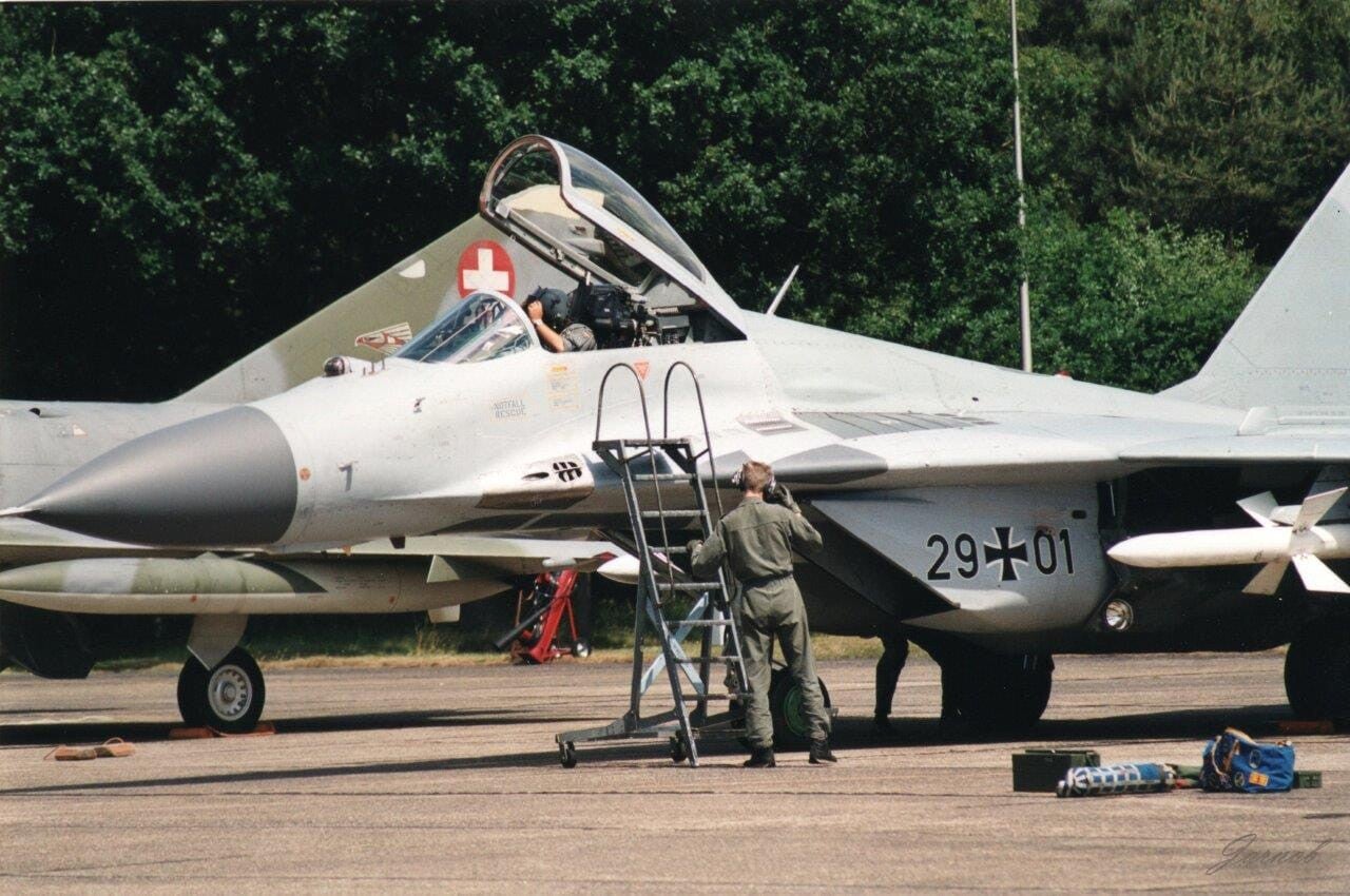 Another really special visitor was a Luftwaffe MiG29G. In 1988-1989 20 Mig29A's and 4 MiG29UB's were delivered to the East German Luftstreitkrafte NVA. After Germany reunited in 1990 the 24 MiG29's, with their East German fighter pilots, started their career flying for the NATO Luftwaffe JG73, being upgraded to MiG29G standard. Many NATO members got the opportunity to practise combat against this Russian main fighter. In 2004 all 24 aircraft were tranferred to their new NATO ally Poland.