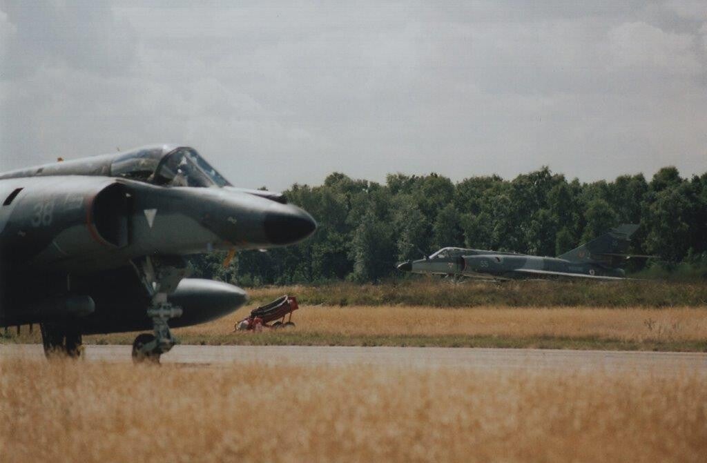Besides the Polish Su22 Fitter some other former Warschaupact aircraft joined the COMAO: a flock of 4 MiG29 Lancer-C's from Baza 86 - the Romanian Air Force, bases at Letesti. Both Polish and Romanian air forces would transit in the near future to the F16 Falcon.