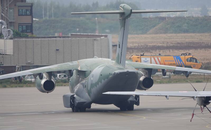 Although very badly positioned for photographs, the Brasilian KC390 PT-ZNG visited Eindhoven airbase for Dutch air force demonstrations after the KLu decided to buy 5 of these. This KC390 is flown as an Embraer demonstrator but still wears its Brasilian Air Force titles and serial number (2852). It is on loan since the original demonstrator was damaged.