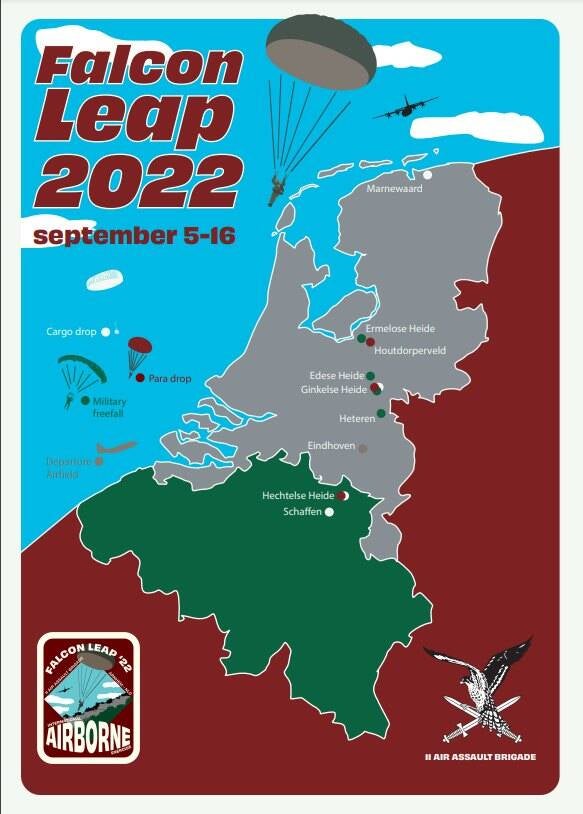 The annual Falcon Leap exercise held at Eindhoven airbase as usual had several foreign transport aircraft participating. The large para droppings were performed during two weeks on several area's. At the end of these weeks the grand finale was performed on the Ginkelse Heide area where the World War 2 Market Garden operation is commemorated.