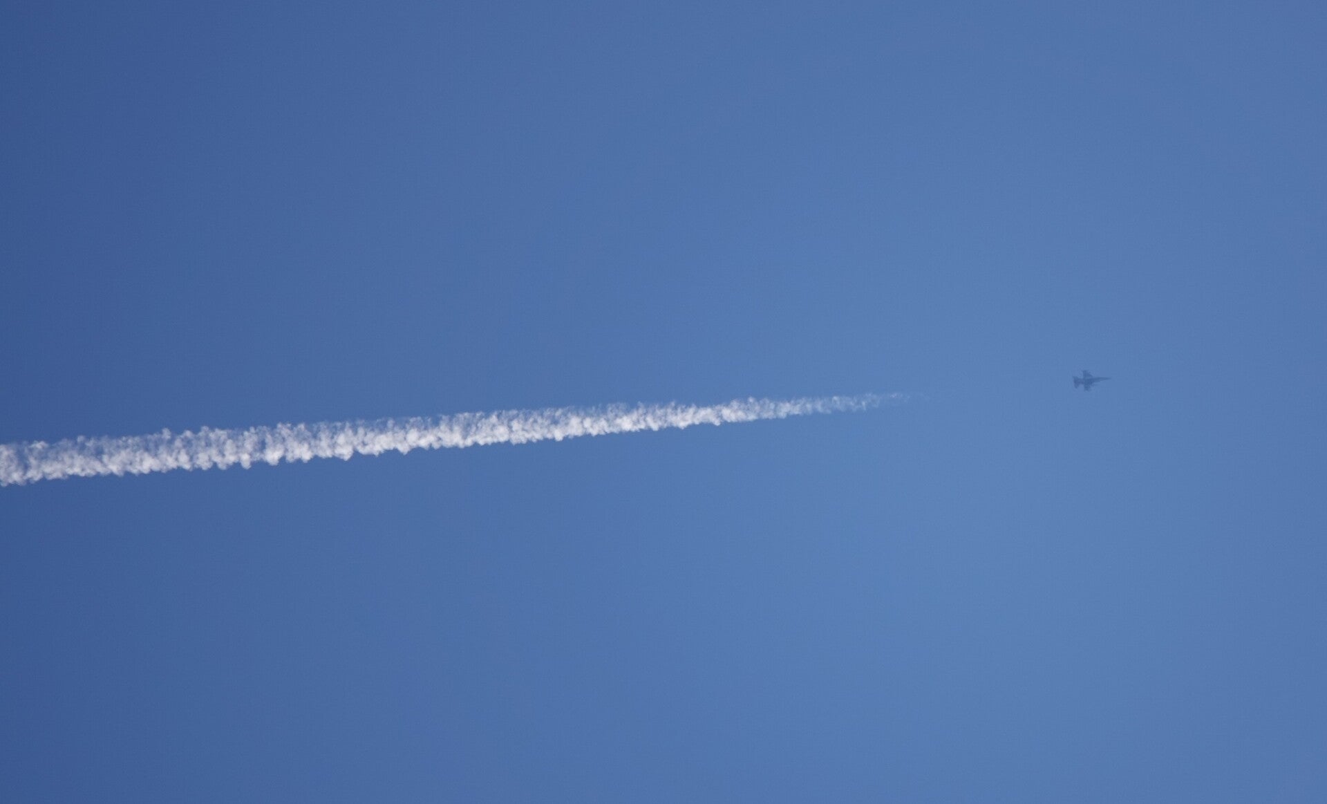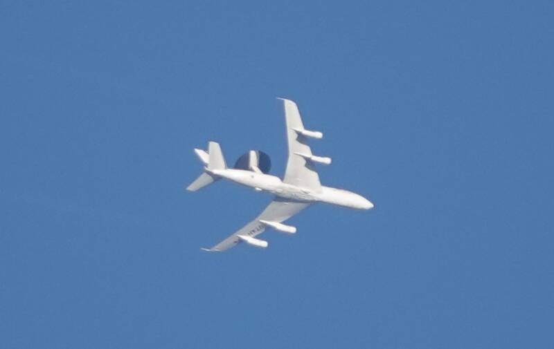 Regulars passing by: to the left a Belgian F16 which regularly fly from Klein Brogel in a 2- or 4-ship formation towards the Vliehors range in the northern Waddenzee area of the Netherlands. To the right an Eindhoven airbase bases A330MRTT.