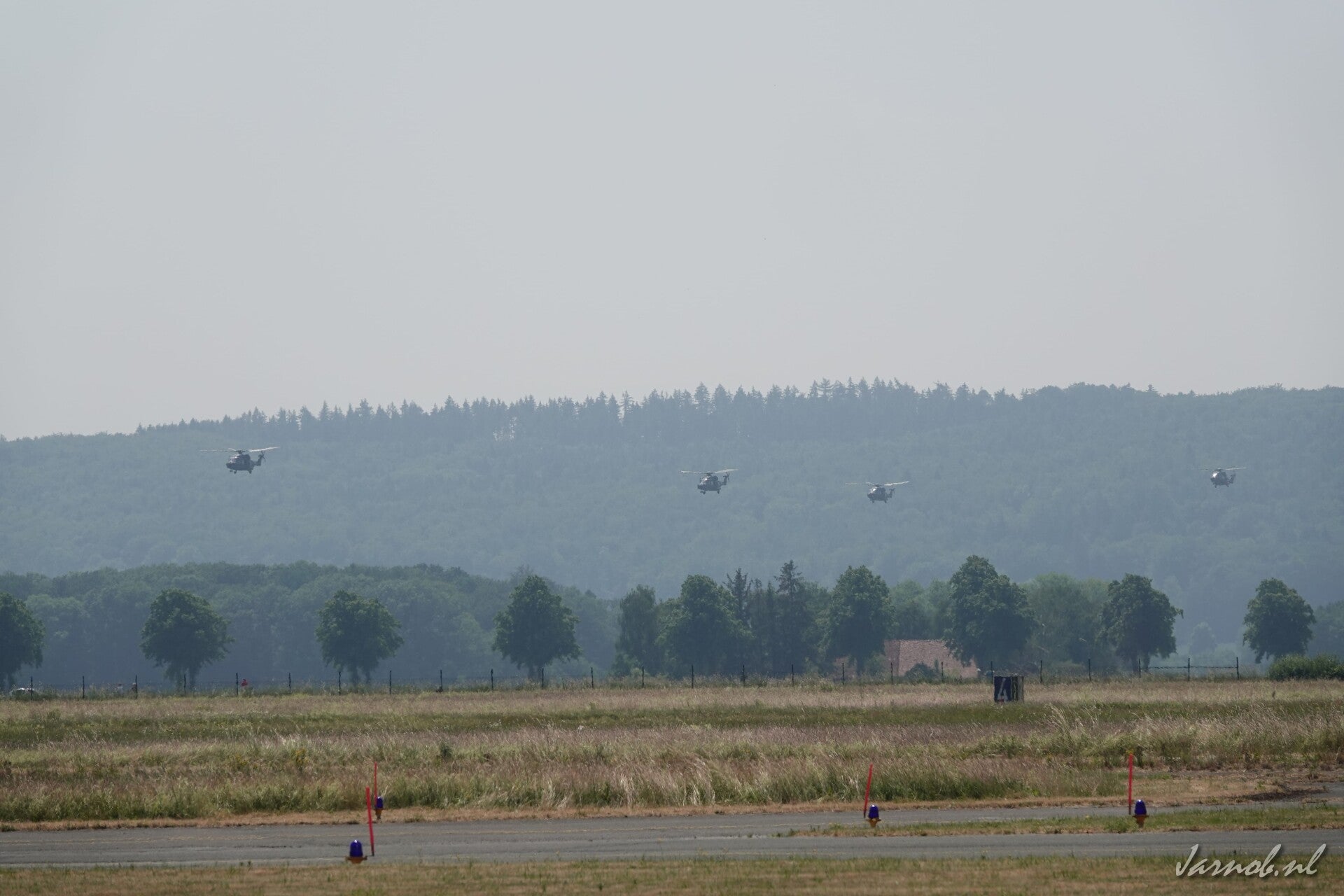 The flying demo's were limited; largest demo was an air assault performed by 4 NH90TTH's, 1 CH53 carrying an small airborne Wiesel light tankl and 2 Tigers as CAS. This demo as others were repeated during the day.