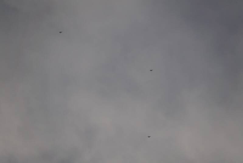 Canadian, Dutch, German and Danish transport evacuation flights while a RC135 flies patterns.