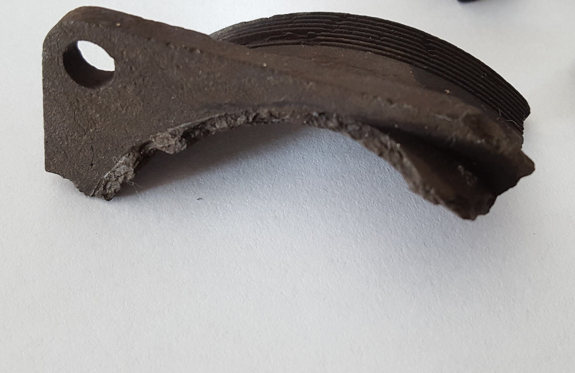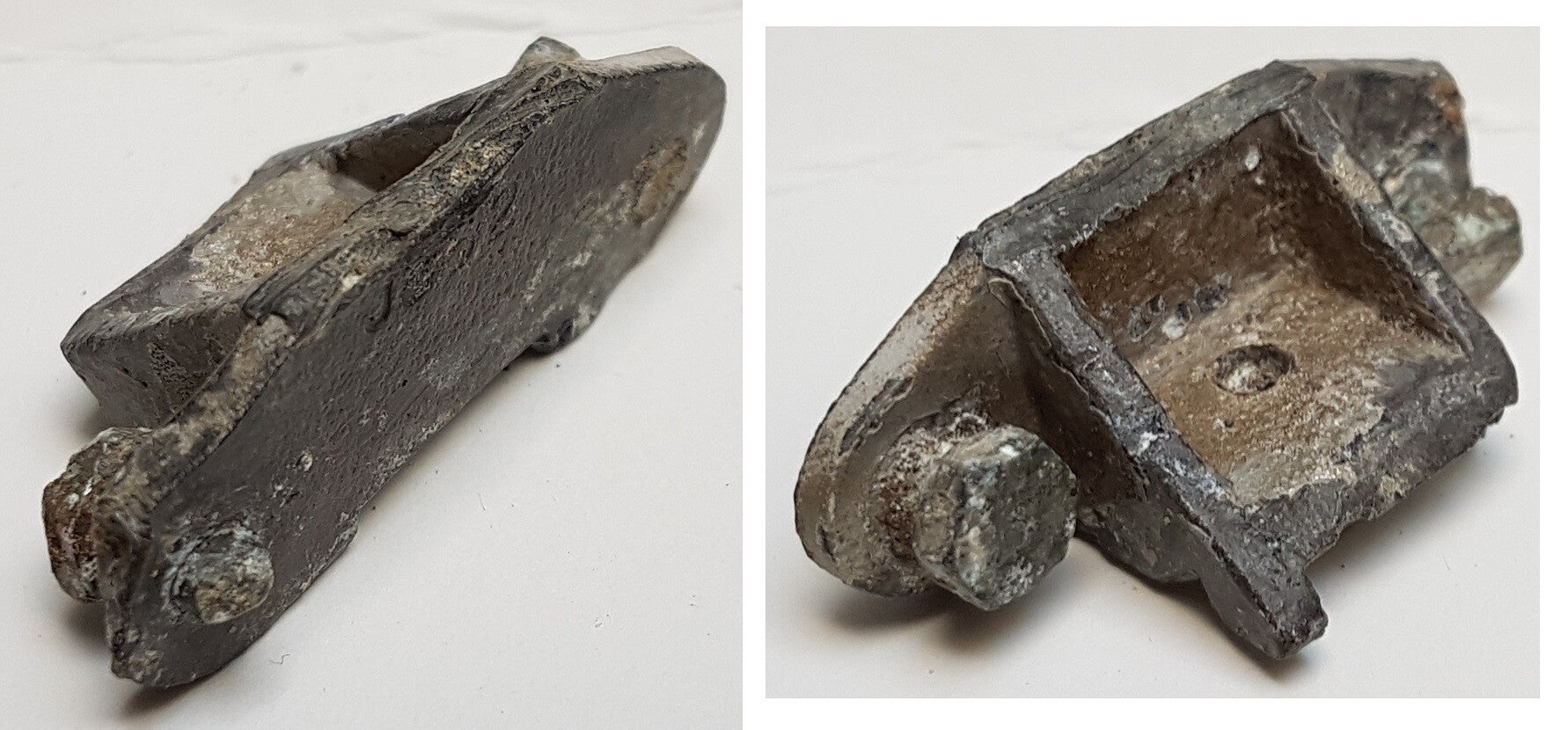 One of the found materials is also rubber, plastic and synthetic materials. A small part of tube can be seen in the centre photograph. The part on the most right photograph is more complex: it seems to be e centre part holding together two strips, on both sides these strips are holding two other opposing strips of the same material together (some kind of seal).