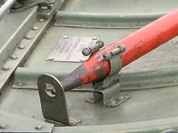 Another interesting piece is a short pin with a perefectly shaped ball on one side - made completely out of aluminium. Now this looks at first sight as a lever/ switch for cockpit equipment. Only slightly resembling part are the levers of the magneto switch - besides having a bit different shape these were made out of metal. After a lot of searching around the aircraft I found the crowbar in the door being held in p;ace by a locking mechanism which consisted of two flanges each holding a small pin with two spheres on each side. Exactly the same as the object found on the crash site. Sometimes in the cockpit LH side two more of these flanges were installed. A total of 8 of these pin constructions could be present inside the cockpit.