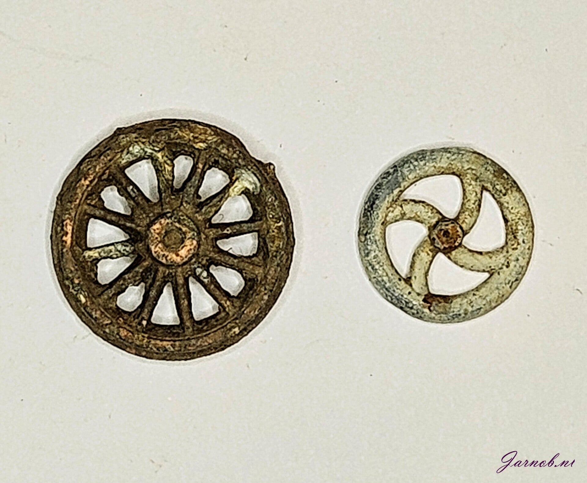 So called 'snorrebotjes' - childrens toy used to make noise while spinning around a thread.