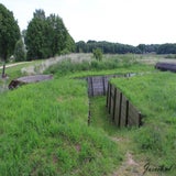 The bunkers around Mill and inside of Mill near the baricaded railway. Some trenches between bunkers are reproduced. And part of the steel railway baricades are still present. There is also a small memorial for the defending Dutch troops: the 3rd and 6th Regiment Infantry.