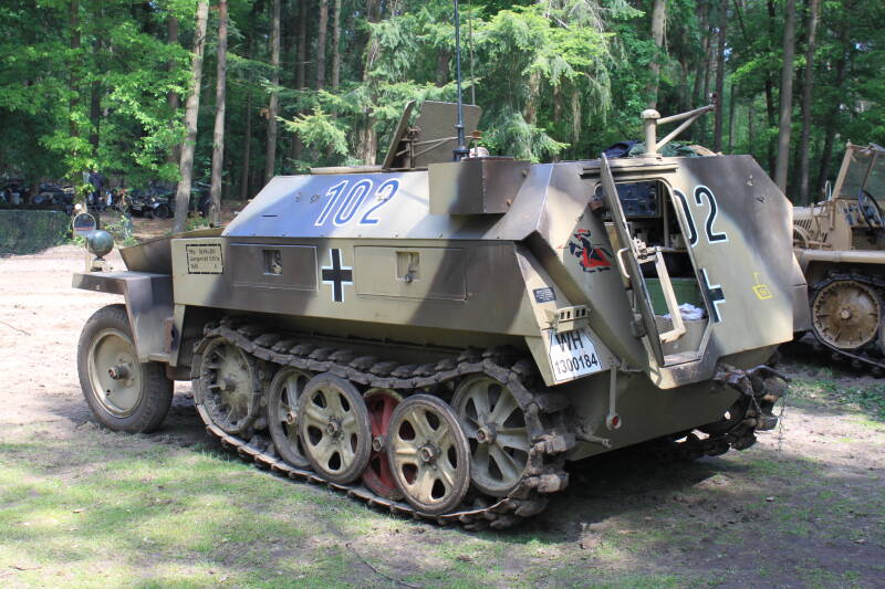 Since 2010 the Overloon Museum organizes the Militracks event. This event is dedicated to operational German vehicles; ranging from motorcycles and everything to tanks. Kettenkrads, Kubelwagens, Schwimmwagen, armoured and soft top halftracks, motorcycles, Krupp Protzes, Horch cars and many more trucks and cars can be seen riding around a track on the museum forrest grounds. Tanks through the years were always brought in from other museums and among these were StuG III's, Hetzers, a Panther, a Konigstiger, Tiger I's, a Panzer IV and a Nashorn. As exception FT17's and Lorraine 37L Schlepper also drove around. Both Panther and Konigstiger came over from the French Saumur museum.