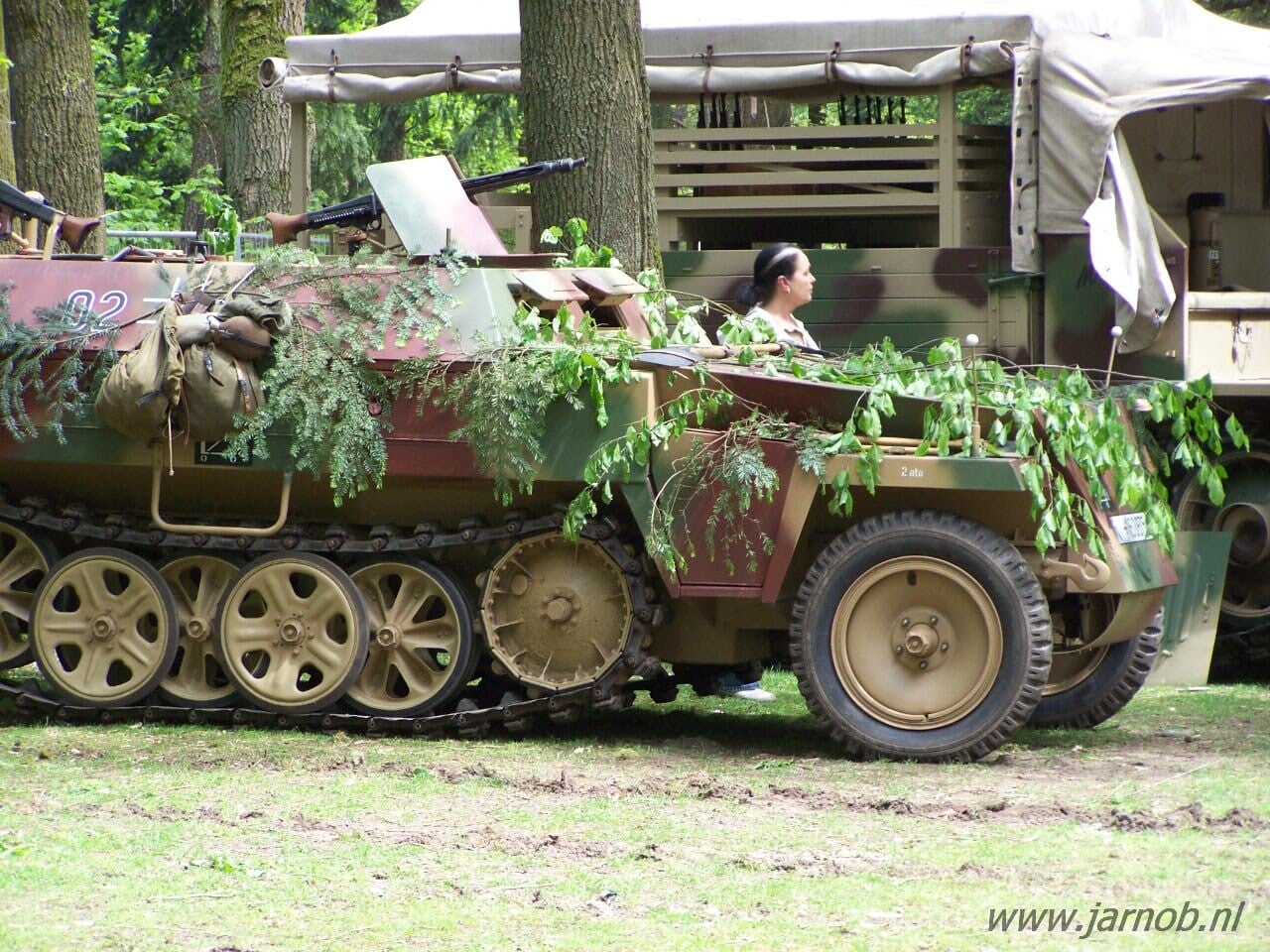 2010 the very first edition of Militracks was a relatively small event. The quantity of vehicles was low but the quality very high: the only panzer was a Hetzer, with nice camouflage and branches all around it. A couple of armoured half tracks acompanied some soft top halftrakcs. Some nicely painted schwimmwagens and SdKfz2 Kettenkraftkrads completed the interesting vehicles. These were added on by trucks, kubelwagens and motorcycles with sidecars. Some of the armoured and soft top halftracks and the Hetzer would show up on some later organized Militrack events.