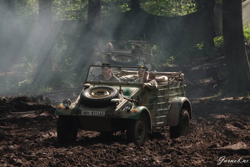 The days just before this Militracks edition were full of rain which resulted in a very muddy terrain; perfect for some nice Panzer and vehicle driving photographs! Once again the event tickets were sold out; to be honest the public area's were too crowded. The waiting lines for vehicles and tickets were extreme long. All driving vehicles and panzers were packed with 'tourists' with their cellphones etc. It was almost impossible to photograph the panzers and vehicles: these were packed with people and too close to the public area's.